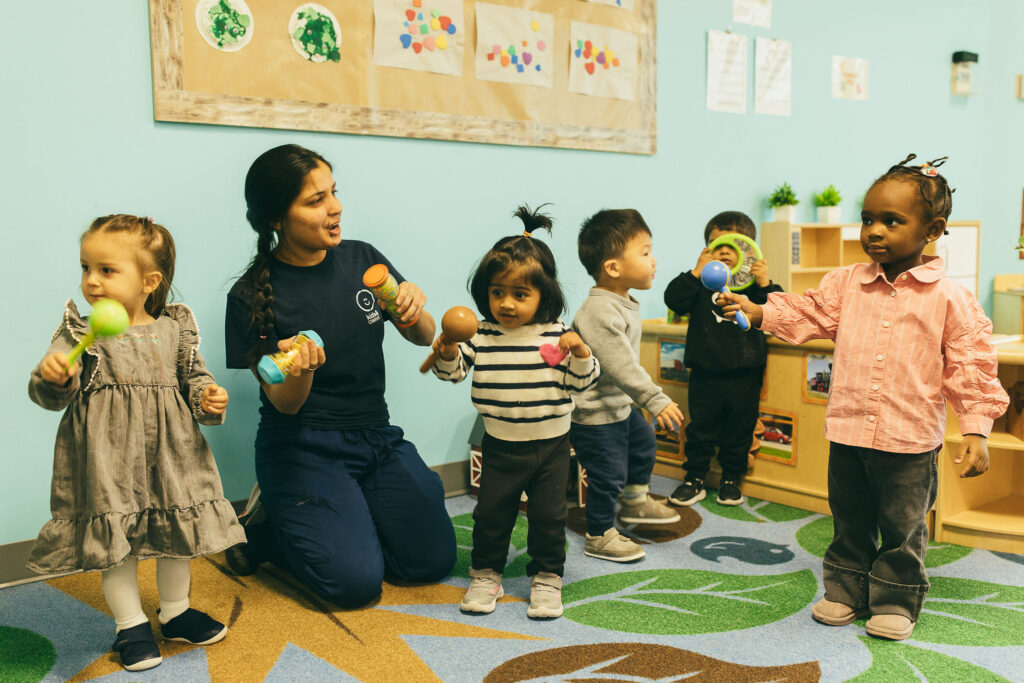 Guided movement, music, and art activities, in combination with Munchkinetics, build balance, coordination, and fine motor control. Educators encourage climbing, dancing, pouring, and grasping to promote growing independence.
