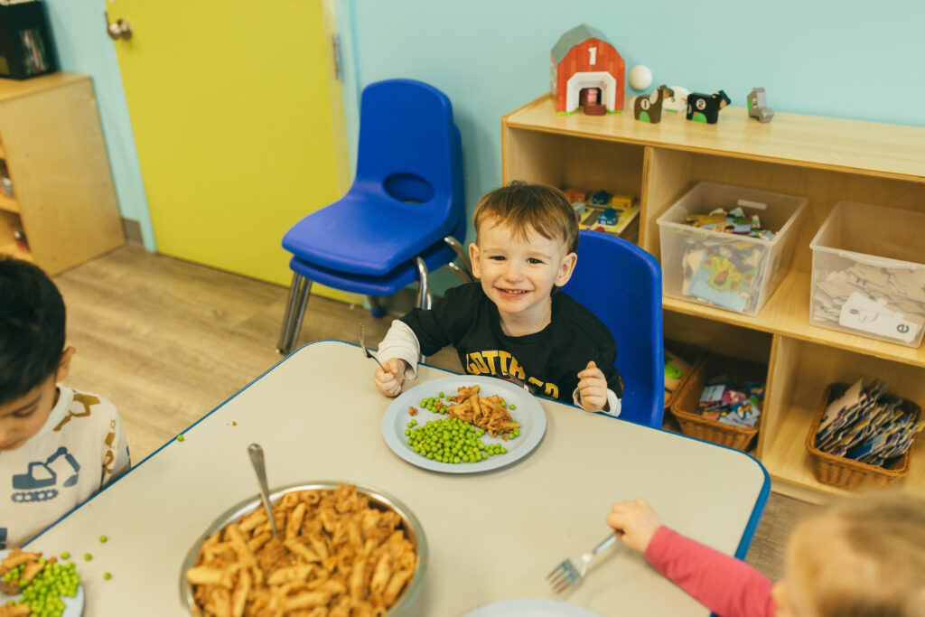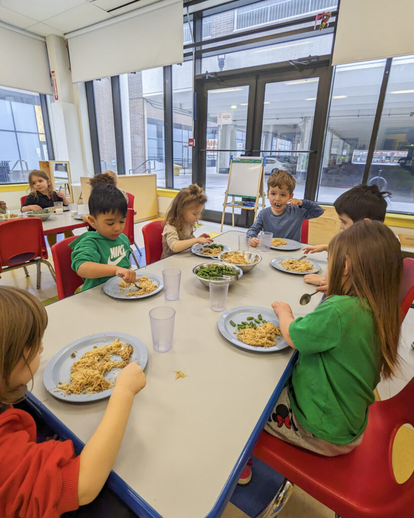 - Family-style dining to empower children to make choices and develop fine motor skills.