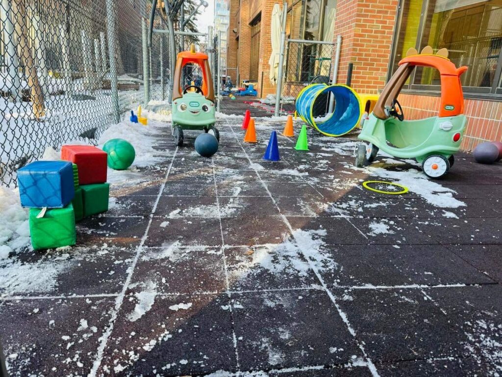 Families appreciate having three large playground areas, each separate for specific age groups. This allows children to enjoy outdoor time throughout the year.
