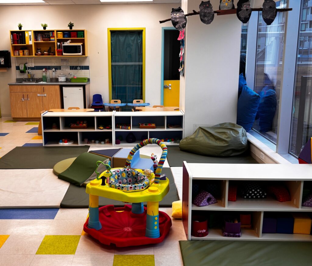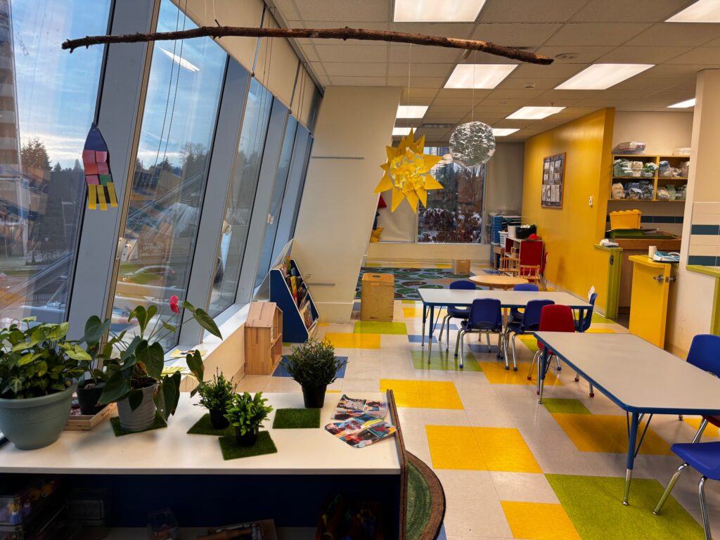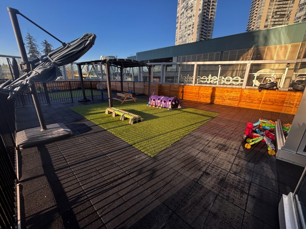 Families love the bright classrooms with large windows, colourful rooms, and a warm, joyful atmosphere. The panoramic patio playground offers creative and active play with views of Holland Park, and children especially love watching the SkyTrain pass by.