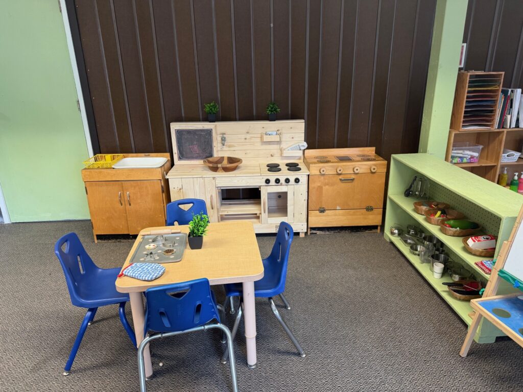 Families love the safe on-site playground, blacktop bike-riding area, large field, and beautiful forested surroundings. Located on spacious residential acreage, this outdoor-focused centre gives children the chance to spend most of their day exploring nature.