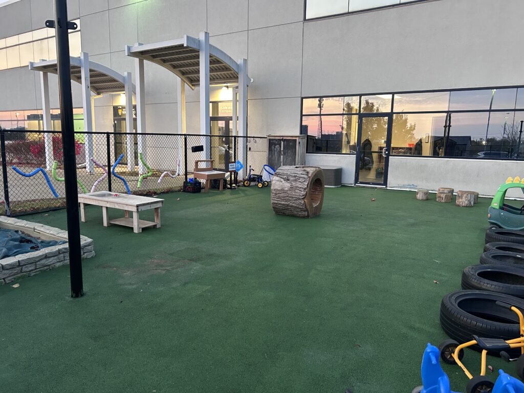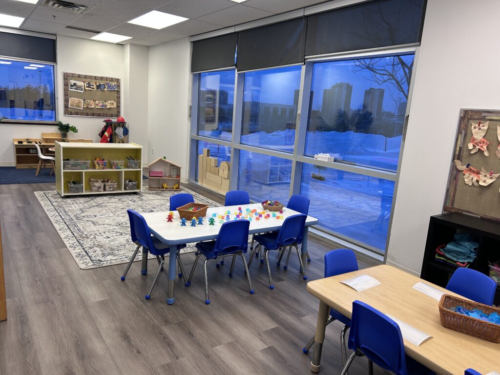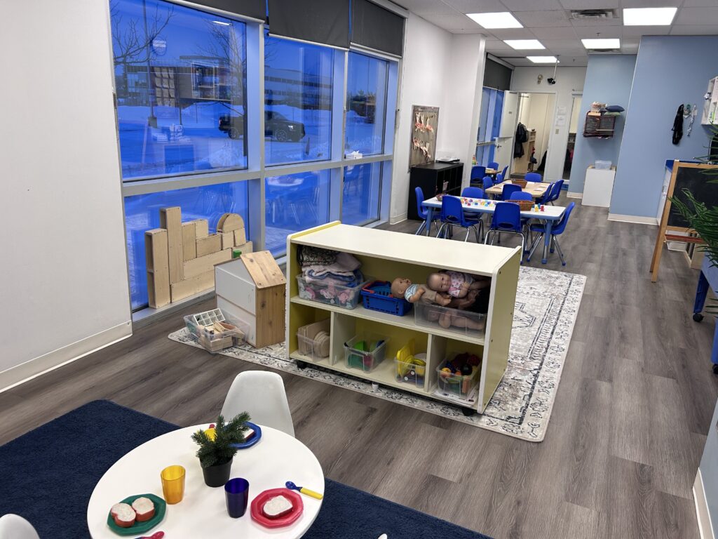 Families love the large windows that brighten the classrooms and allow children to see their parents arriving at pick-up. The playground offers plenty of open space for gross motor play, along with natural wood tunnels and stumps, and a sandbox, all set in quiet natural surroundings where children sometimes spot Canadian Geese and Red-Tailed Hawks.