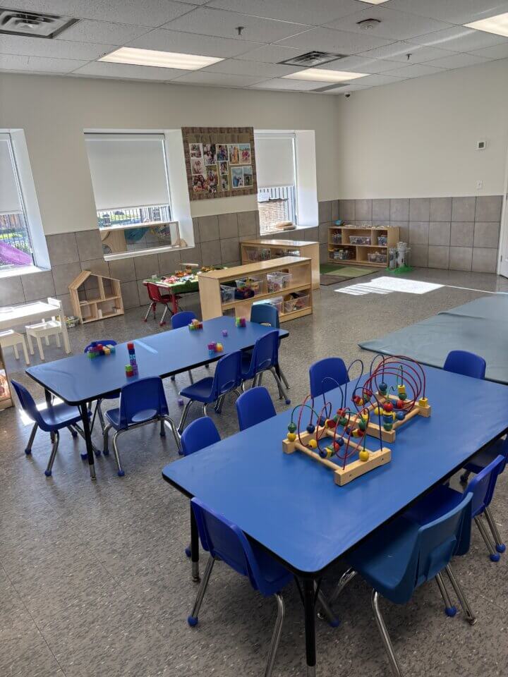 We have 4 classrooms that can accommodate 57 children in our Infant, Toddler, and Preschool programs. These programs are available full-time or through available backup care hours.