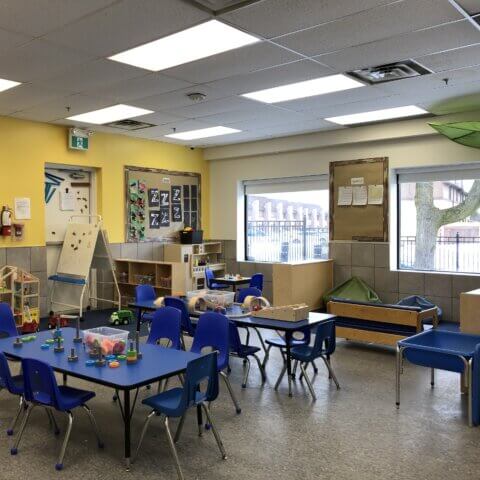 Our emergent curriculum and learn-through-play philosophy allow children to explore their interests while receiving guidance from our Early Childhood Educators. Classrooms are full of educational toys and large windows to let in lots of natural light. Outside we have a gated playground stocked with fun equipment as well as a climber for preschoolers