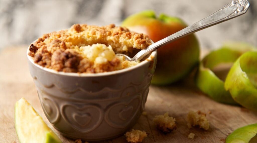 Apple Crisp, or Apple Crumble as it’s known in the United Kingdom, is a yummy dish created from baked apples and topped with a sweet, crispy, oat crust. Apple Crisp is a British tradition that has made its way across the ocean and into our hearts, particularly in the fall season when apples are plentiful and at their peak. There are 7500 varieties of apples grown in the world! The secret to the perfect Apple Crisp is to use two varieties of apples: one firm and crisp and the other soft and sweet. For example, combine the tartness of a Granny Smith with the sweetness of a Honeycrisp and you’ll be the apple of everyone’s eye!