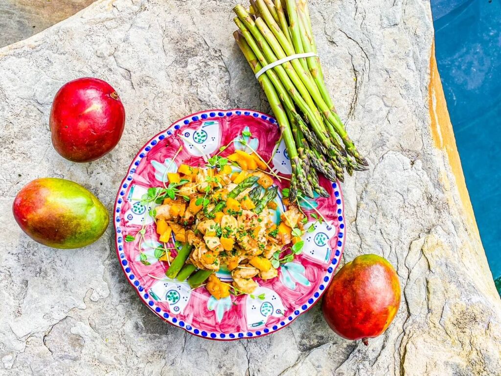 Mangoes are the perfect accompaniment to any dish because they are sweet, fresh, and juicy with just the right touch of tartness. Their natural tenderizing properties make mangoes a great ingredient for marinades for any type of meat or fish. When cooking with mango, add it to a pan, tossing gently for 10 minutes or until mango is lightly browned and serve with lime wedges with your protein of choice. They are the ideal palate pleasing balance for curries and are often paired with salt, fat, acid or heat!!! Try making a yummy sunny mango salsa with mango, papaya, avocado, a little bit of lemon juice and cilantro. You won’t believe how it elevates your fish, tacos or anything that comes off the BBQ!