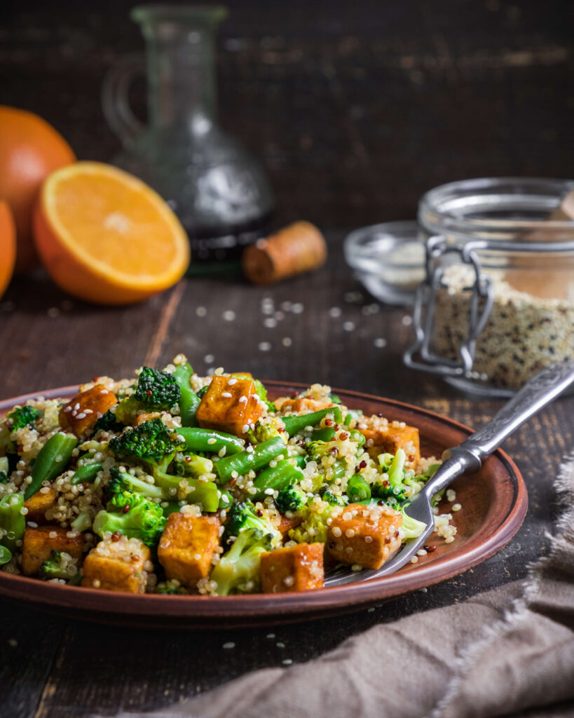 - Pour orange sauce over the tofu and cook for a further 15 minutes.