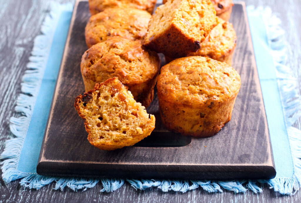 - Pour mixture into paper lined muffin pan, adding raisins if desired.